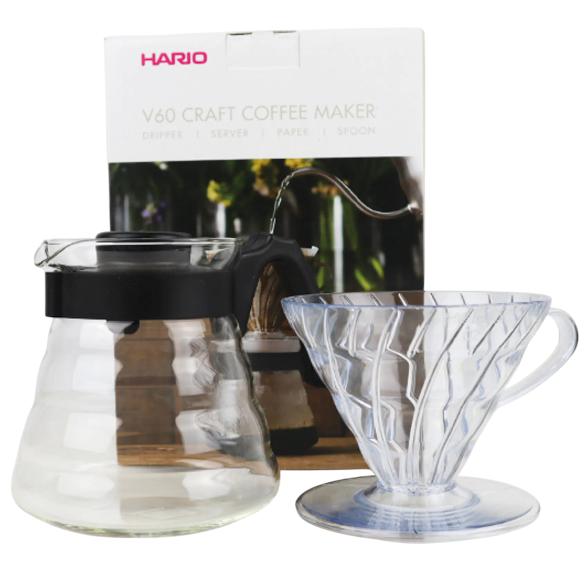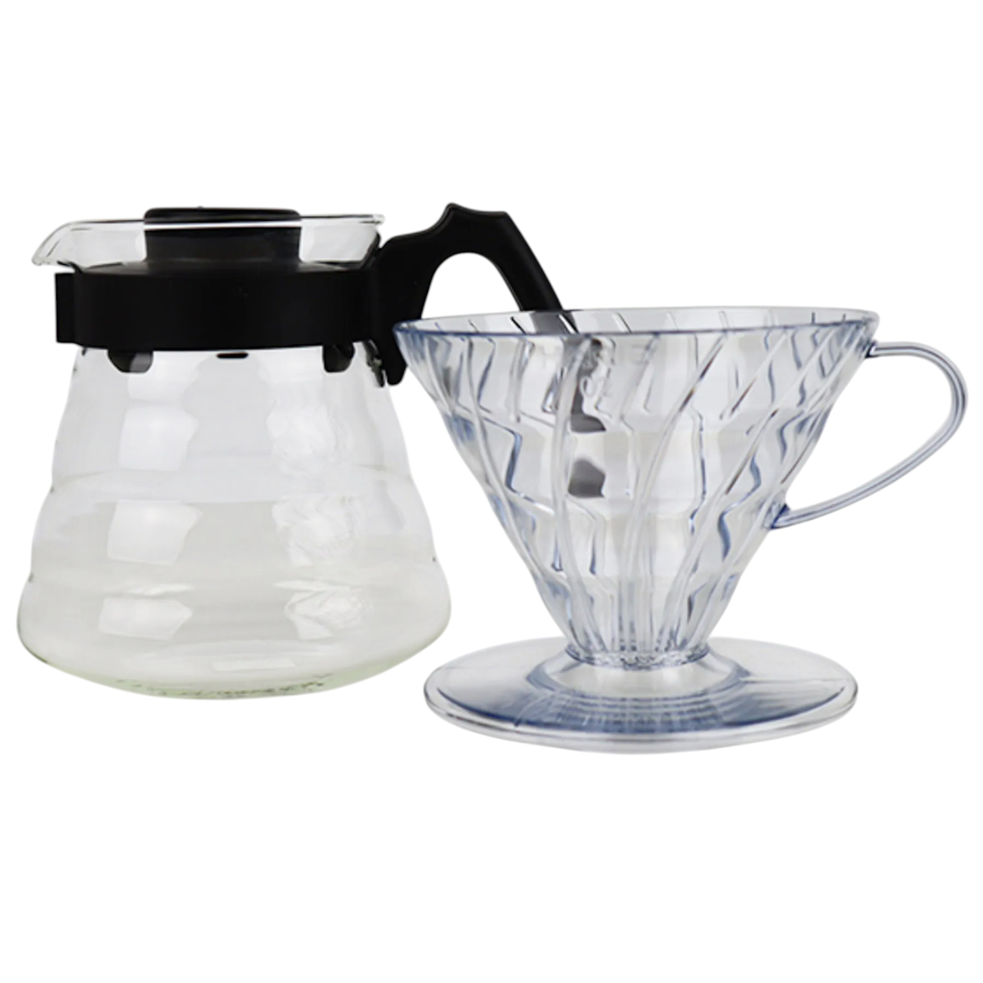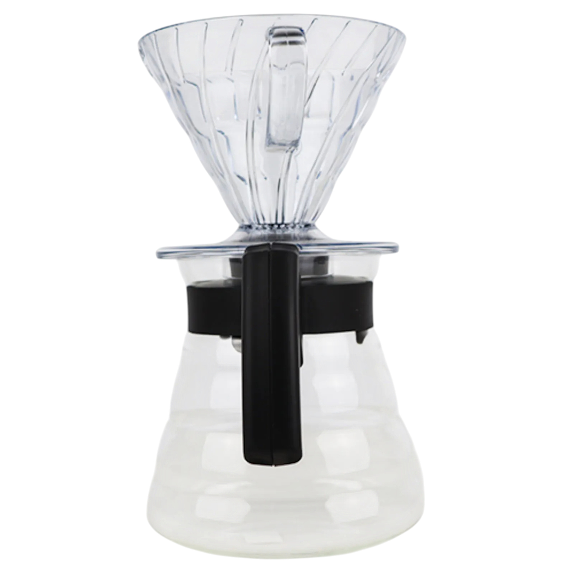 HARIO V60 Dripper & Dekantér v čiernej farbe poskytuje kompletnú súpravu na prípravu filtrovanej kávy doma.